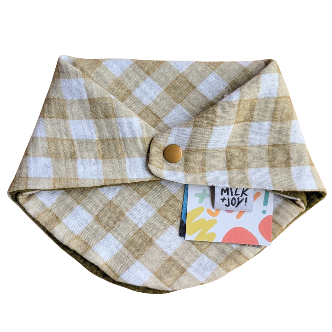 Ready to post reversible double bib - Green Painted Gingham / Moss Our handmade reversible...