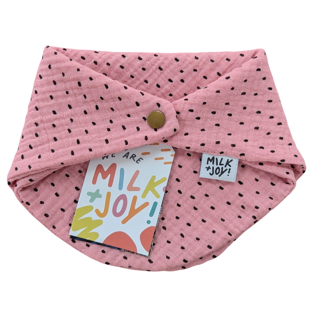 Ready to post reversible double bib - Pink Dash Our handmade reversible double bibs are...