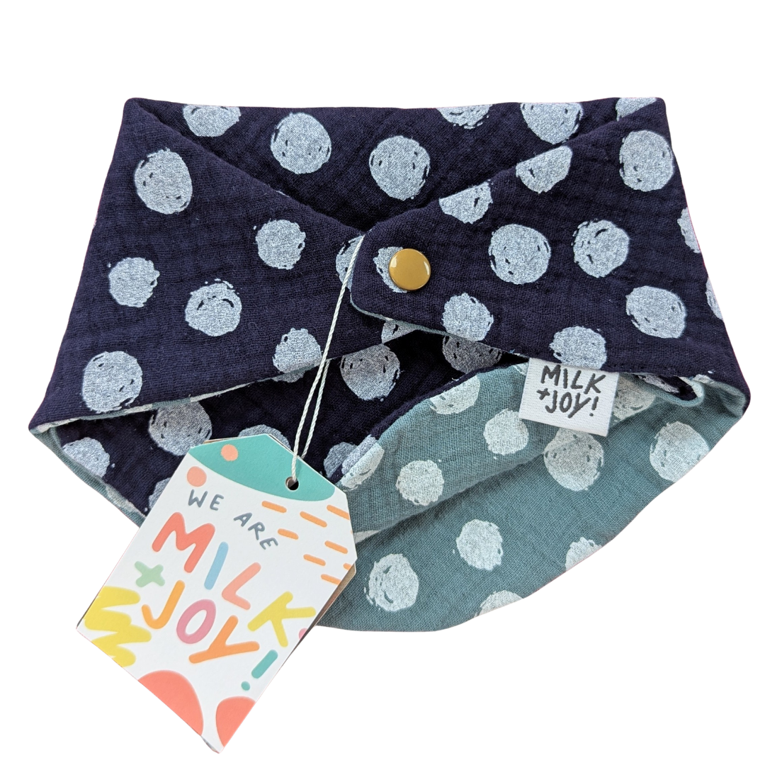 Ready to post reversible double bib - Green Painted Spot / Navy Painted Spot Our...